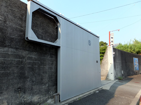 町を囲んで防潮堤があります。要塞みたい。